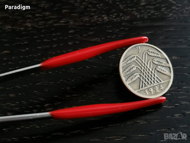 Монета - 5 пфенига от 1924г.; серия J