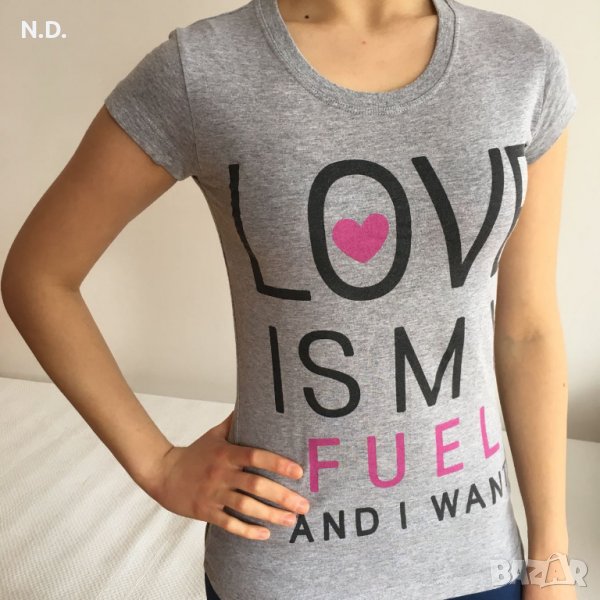 Сива тениска с надпис Love... 3 лв.