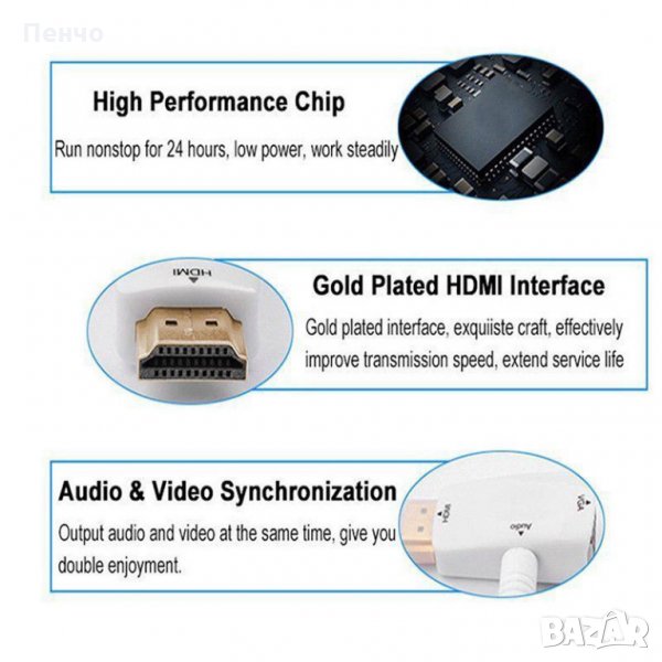1080P адаптер за HDMI към VGA конвертор + 3,5 мм аудио видео