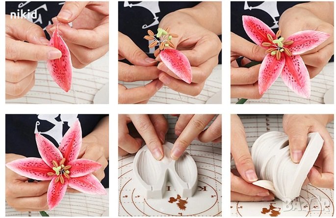 3 релефни листа листо за Кала Лилиум силиконов молд форма за декорация и украса торта фондан шоколад → Обява 26125133