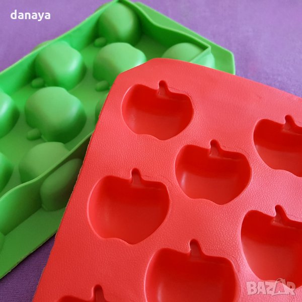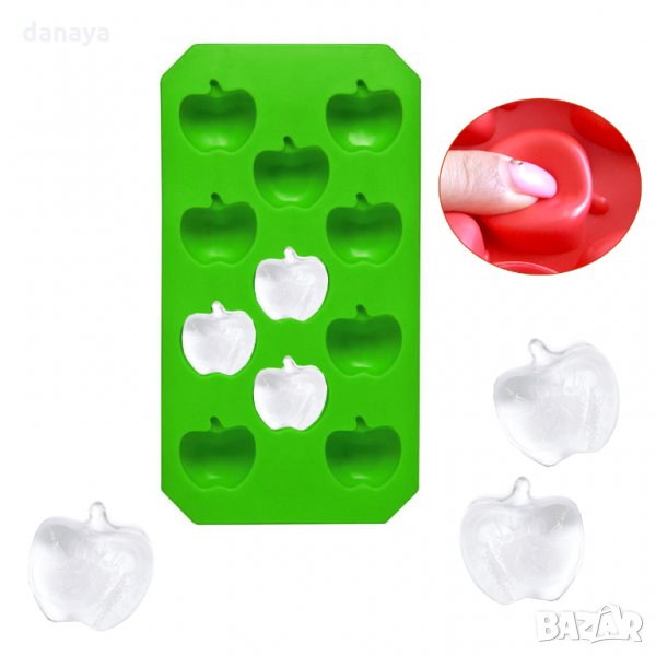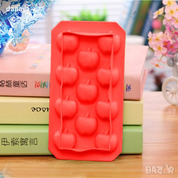 Силиконова форма за лед ябълки. Силиконови форми за лед или шоколадови бонбони ябълка. Всяка тавичка съдържа 11 гнезда с форма на ябълка. Нестандартни формички за лед. Идеални за горещото лято. Предлагат се в два цвята - зелен и червен.