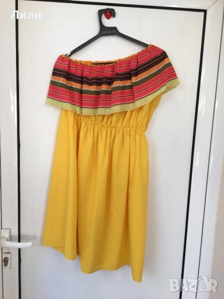 Жълта рокля с голо рамо → Обява 26136186
