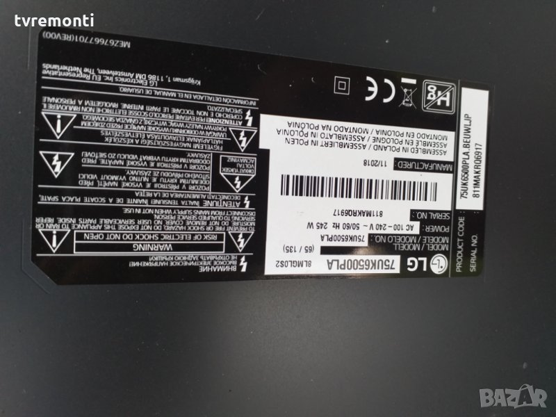 модел LG 75UK6500PLA блок за захранване LGP75T-18U1 панел HC750DQN-SLUR2-2141 тесвана от нашия техник