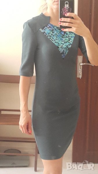 Елегантна рокля, удобна, еластична материя, обичана само за проба, без забележки. С 3/4 ръкав и ефектно деколте. Гръдна - 42, талия - 36, дължина от рамо 88.