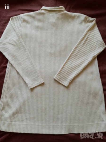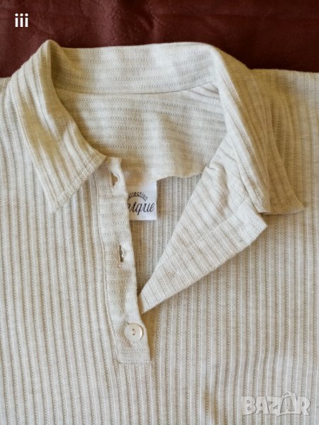 Блузата долу е с цепка. С яка. Има резервно копче.