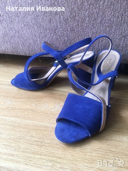 Продавам сандали на висок ток от естествен велур и подметка от естествена кожа . В отлично състояние са . Носени са два пъти по повод . Не се разменят за друга стока .
