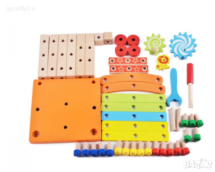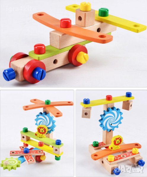 Направен изцяло от масивно дърво,конструктора позволява да го сглобите в три различни неща