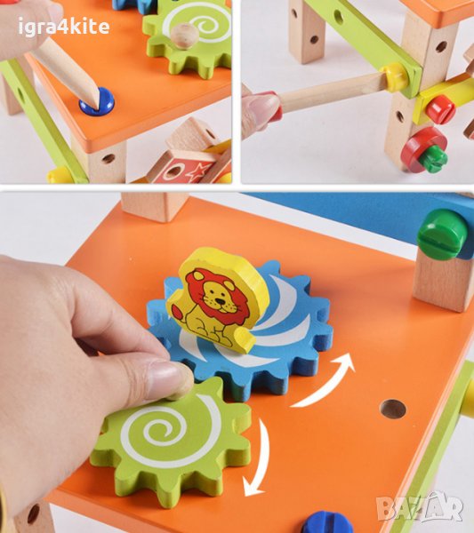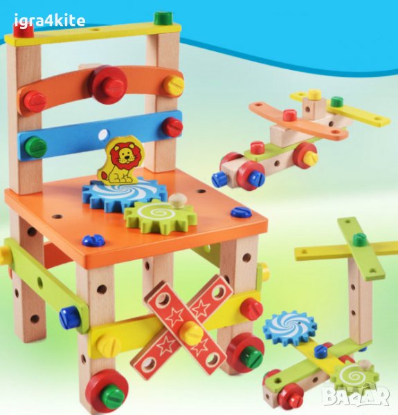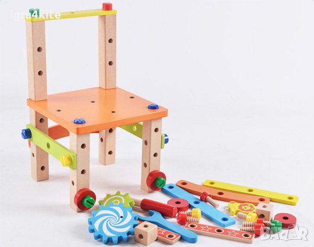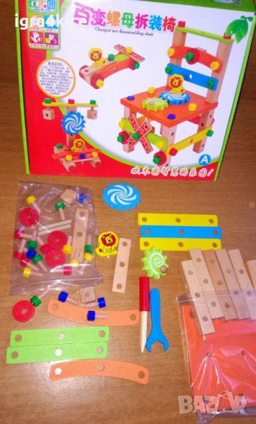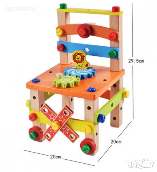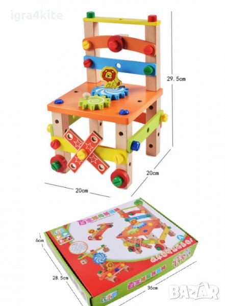 Дървено столче с врътки , конструктор 3в1 всички дървени играчки