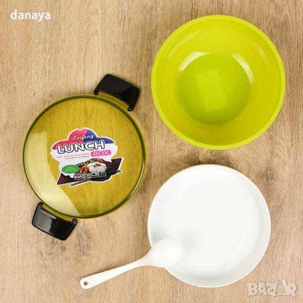 Детска кутия за обяд с 2 отделения и лъжичка. Прозрачен капак с гумирано уплътнение. 2 дълбоки отделения с обща вместимост 300-500ml. Лесно отваряне и затваряне. Кутията е подходяща за училище или за пътуване. Предлагат се в 3 цвята - син, зелен, розов.