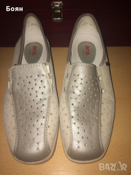 Дамски обувки на елегантна платформа ARA, материалът, от който са изработени, е естествена кожа, имат специална гумичка за стъпалата, която олекотява ходенето и допринася за удобство. Обувките гарантират лекота и комфорт. Отговарят на размер 38 и 1/2 и са на цена от 50 лева.