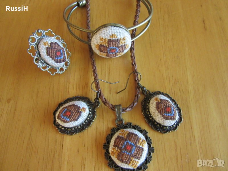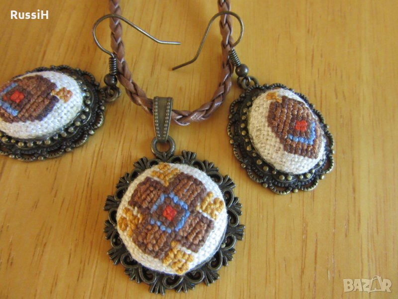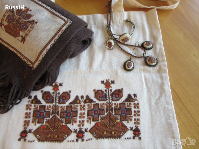 Ръчно бродирани аксесоари шал , торбичка и бижута с българска шевица → Обява 26168840