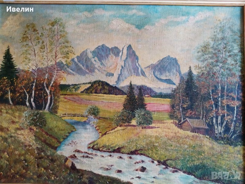 картина-пейзаж.масло на платно на подрамка с размери 39см/54см.в рамка с размери 49см/64см.подписана