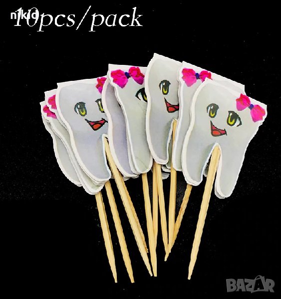 10 бр топери клечки Първо зъбче зъб за мъфини декорация кексчета торта и парти, снимка 1 - Други - 26176176 10 бр топери клечки Първо зъбче зъб за мъфини декорация кексчета торта и парти, снимка 2 - Други - 26176176 1/2