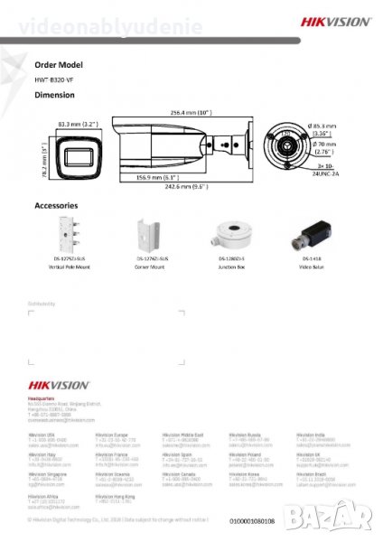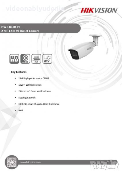 HikVision HWT-B320-VF 2MP VF2.8~12mm Варифокална Смарт IR 40М Нощно Виждане IP66 Метал Водоустойчива