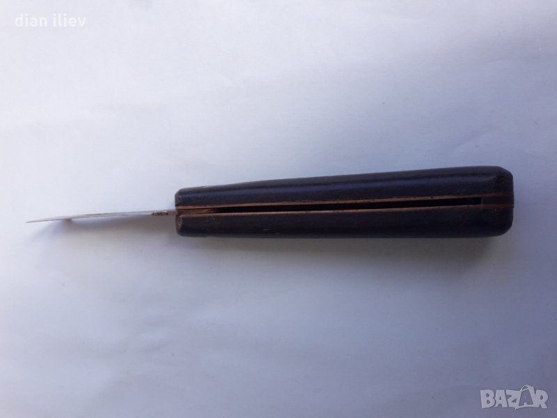 Стара сгъваема Бг.джобна ножка,Сърп и чук. Ножката е перфектно състояние за годините си, здраво острие и дръжка без луфтове хлабини и т.н. За колекционери и ценители на ретро предмети. Забележка острие за почистване.