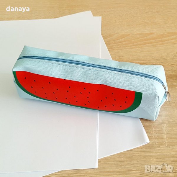 Ученически несесер за съхранение на химикали, моливи, ножичка за рязане, гумичка и още много ученически консумативи. Свеж дизайн на плодове - резен диня, пъпеш или