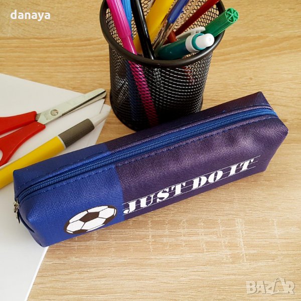 Ученически несесер за съхранение на химикали, моливи, ножичка за рязане, гумичка и още много ученически консумативи. Стилен дизайн с футболна топка и надпис JUST DO IT. Компактен размер, побира се във всяка раница. Несесерът се затваря с цип. Външната част е изработена от