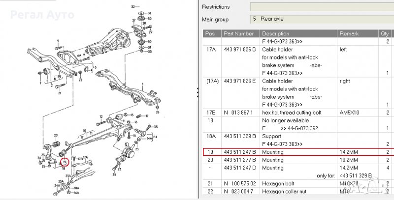 443511247B тампони задно окачване AUDI 100 QUATTRO,1985-1987 → Обява 26190304