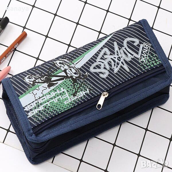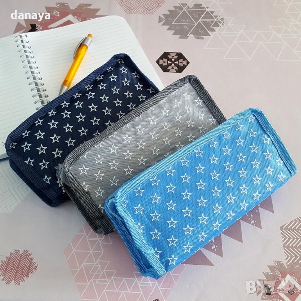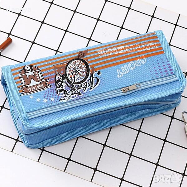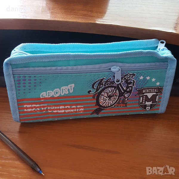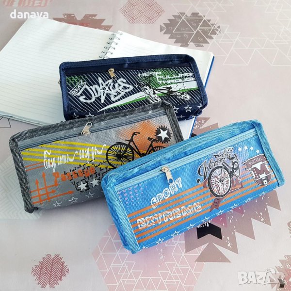 Ученически несесер за съхранение на химикали, моливи, ножичка за рязане, гумичка и още много ученически консумативи. Спортен дизайн с принт на колело и звезди. Компактен размер, побира се във всяка раница. Несесерът има две прегради, затварящи и отварящи се с цип. Външната част е изработена от оксфорд материал, а вътрешната от PVC. Лесен за поддръжка. Несесерите се предлагат в 3 модела.