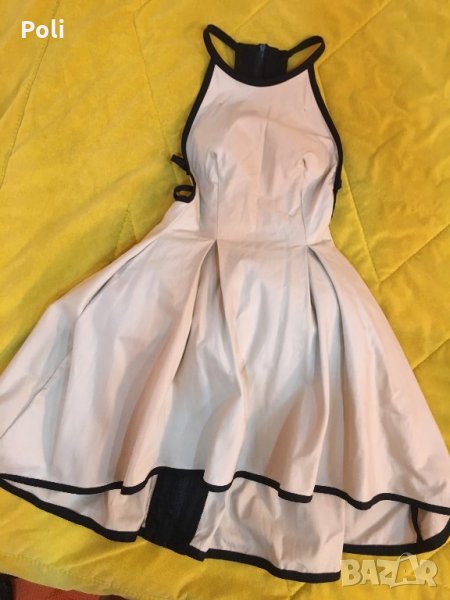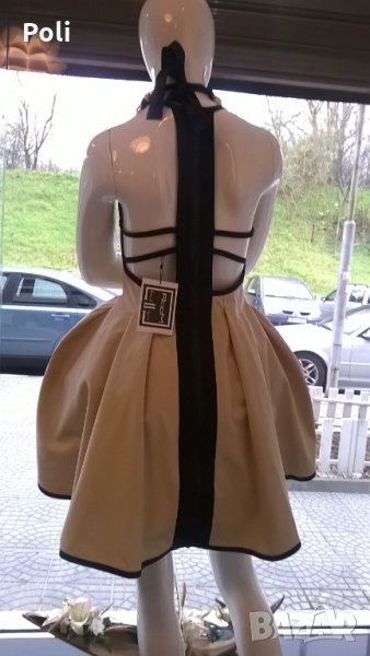 Уникална рокля купувана от фейсбук страницата на бутика. Чисто нова е, само е пробвана. Към роклята са пришити единствено чашки, което да позволява носенето й без сутиен. Освен това има тюлена пачка, която да придаде обем на полата на роклята, може да се носи и без нея.