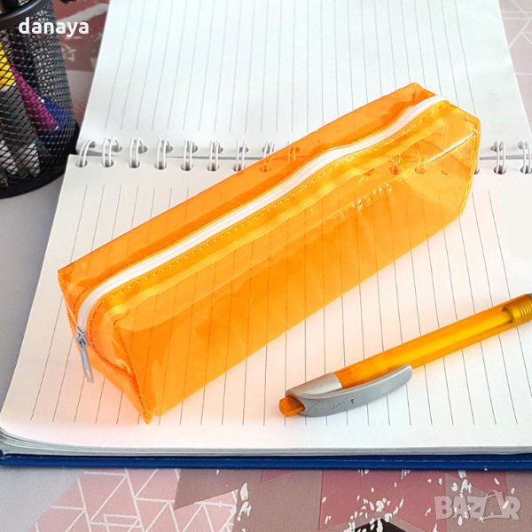 Ученически несесер за съхранение на химикали, моливи, ножичка за рязане, гумичка и още много ученически консумативи. Изчистен прозрачен дизайн в неонови цветове. Затваряне и отваряне с цип. Изработен от PVC материал. Лесен за поддръжка. Несесерите се предлагат в 6 свежи цвята - лилав, жълт, оранжев, зелен, син и розов. Прекрасна малка чантичка с широко приложение. Може да се използва и като