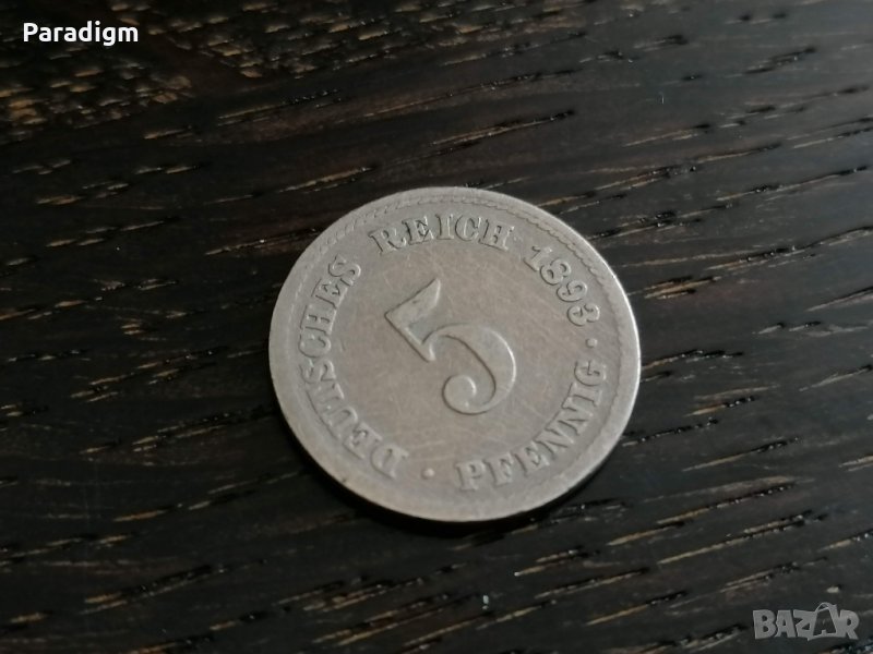 Монета - 5 пфенига от 1893г.; серия A