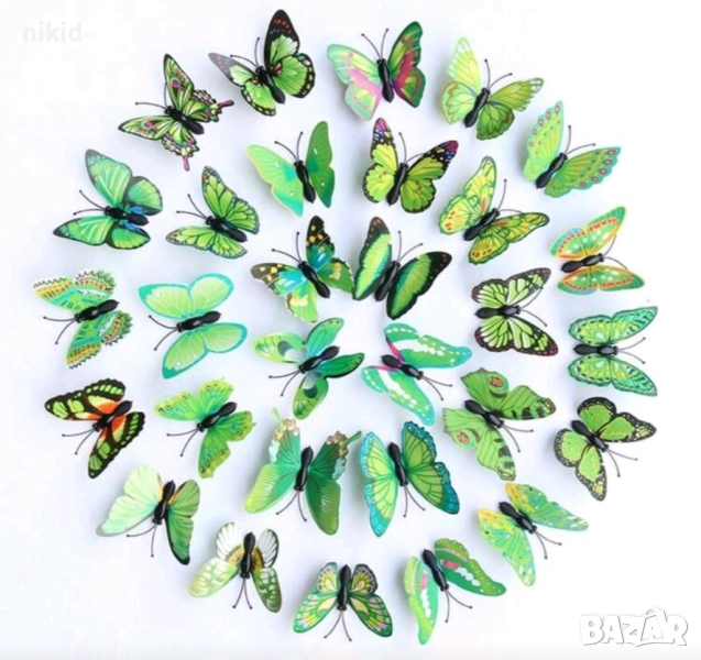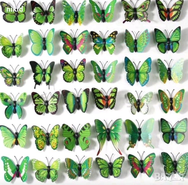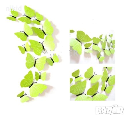 3D 12 бр pvc зелени магнитни и самозалепващи пеперуди декорация за стена и мебел → Обява 26212084