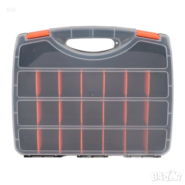 Функционален и удобен органайзер с 21 отделения, създаден за подреждане и съхранение на дребни инструменти, крепежни елементи и аксесоари. Благодарение на прозрачния капак и практичната конструкция, винаги имате ясен преглед и лесен достъп до съдържанието.