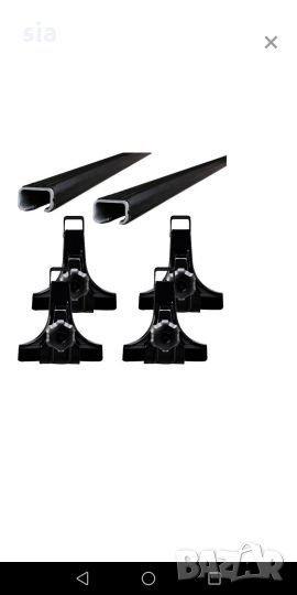 Багажник за автомобили , джипове без надлъжни греди/релинги/ на покрива. Лесен за монтаж . Захващане към водобранната лайсна на тавана. Дължина на гредите 125см . Товаримост до 70кг. Гредите са метални с гумено покритие стойките също са метални .Цената е за пълен комплект 4 стойки 2 греди