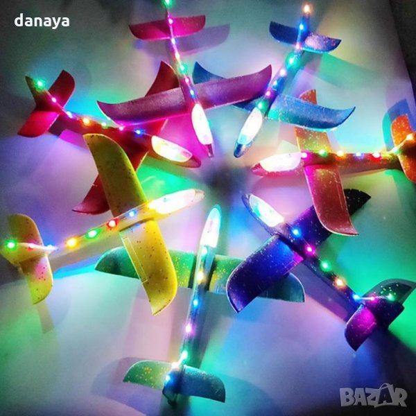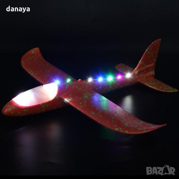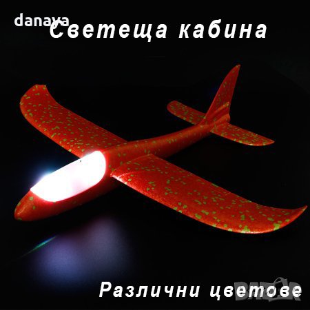 Модел 3 голям - Стиропорен самолет със светеща кабина лед лента на гърба с налични цветове: зелен, жълт, оранжев, син - ЦЕНА: 8.70лв