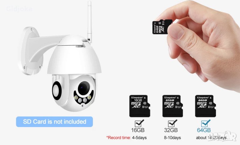 Опция за свързване към WiFi рутер и гледане дистанционно посредством мобилни данни или WiFi връзка на телефона.