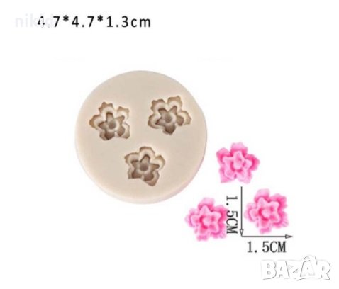 Тройка малки двойни цветенца силиконов молд форма фондан украса торта декорация мъфини → Обява 26219676