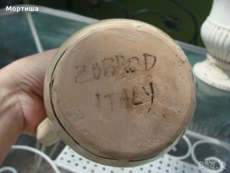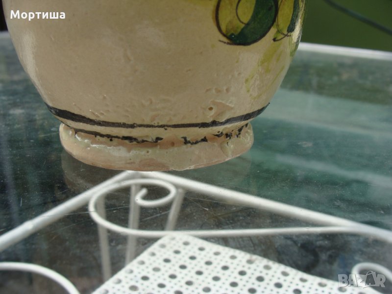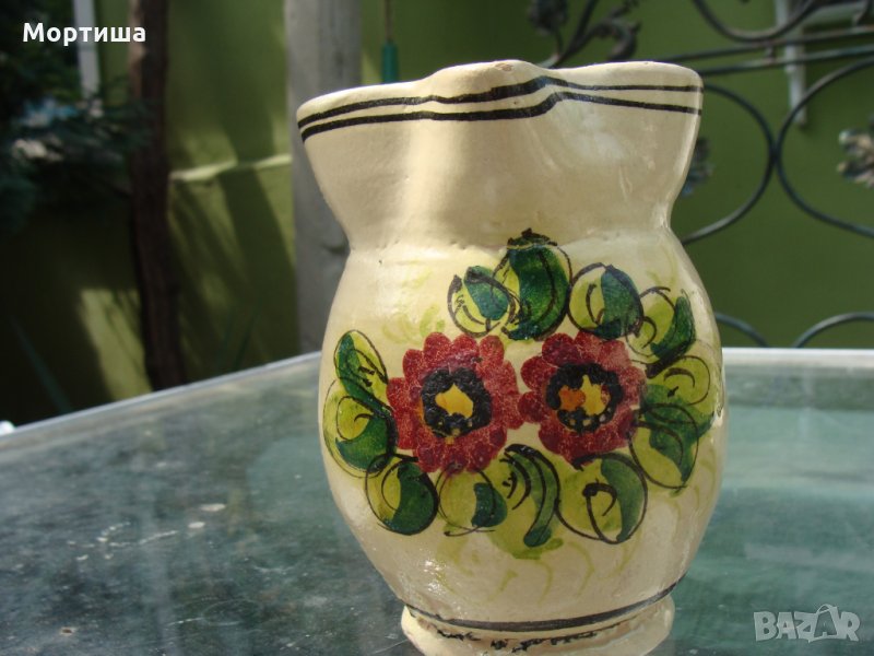 От 1920 год изцяло ръчна изработка което се забелязва по не съвършените детайли който я правят още по ценна .цветът е слонова кост а цветята релефни великолепна Височина 13 см вместимост около 400 милилитра .За колекционери и ценители Крайна цена без бартери