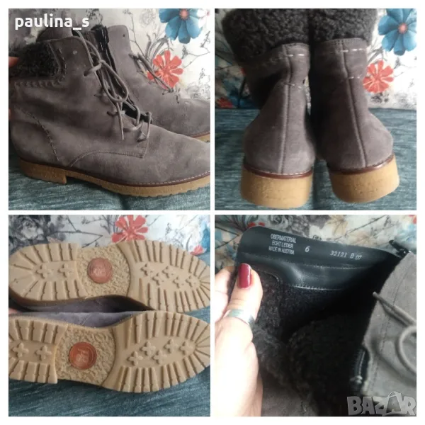 Стелка 25,5см. Колажите са на маркови боти от естествен велур и кожа, които предлагам в други мои обяви. Моля, разгледайте и другите ми обяви и последвайте профила. При покупка за над 70лв, поемам част от доставката до офис на Еконт и правя отстъпка от общата цена, така цената за доставката не изглежда твърде непосилна. Приятно разглеждане. Продажбата е с благотворителна цел, цената не се коментира. Благодаря за вниманието и отделеното време 🙂