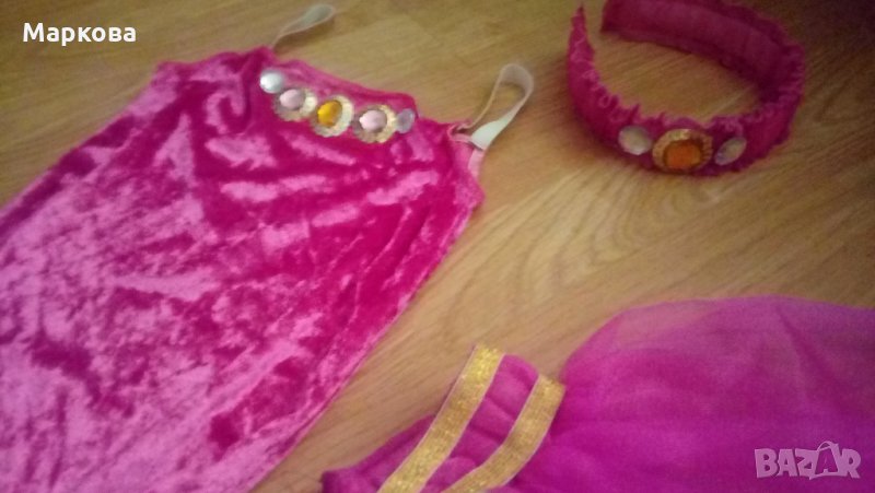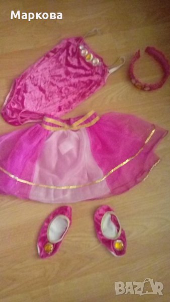 Комплект за балерина Teetot&Co.Inc. в розово-цикламен цвят в четири части . 100% полиестер. За 2 до 4 г. Донесен от САЩ. Обличан веднъж. Без забележки, с изключение на диадемата – 2 места с леко прокъсан плат, незабележим от външната страна.
