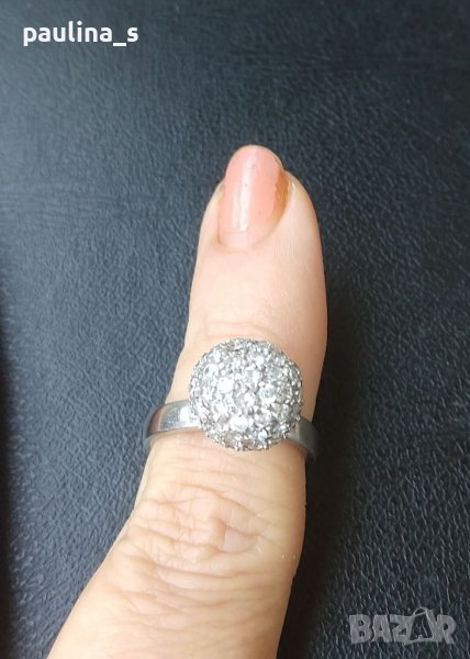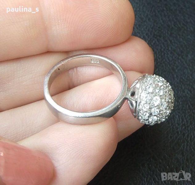 1️⃣. Мaсивен сребърен пръстен, двойно маркиран с проба 925 и печат Житен клас 925, с бели в ковани циркони - топка. Има един паднал камък, който лесно може да се постави при майстор, съобразена е цената, не се продава на грамаж. Размер 17мм.