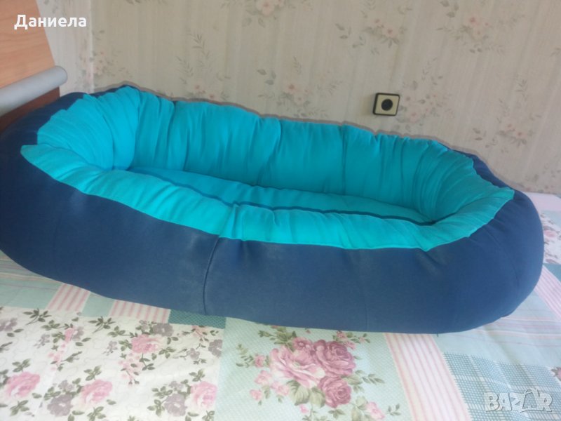 Елипсовидно легло за куче с размери :вътрешни 35/70,външни50/80.Височина на борда 25см.Меко и уютно. Пере се в пералня. Пълнежът е от силиконов пух и вата. Изработвам в желан цвят и размер. Разгледайте и другите ми обяви. Тел. 0889354990