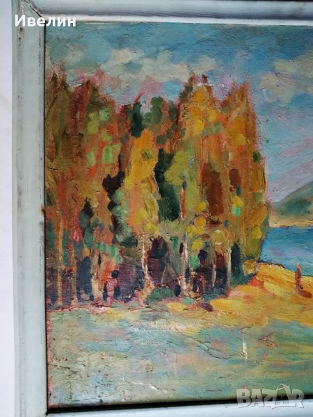 стара картина-пейзаж.масло на шперплат с размери 67см/102см, в дървена рамка с размери 77см/112см.