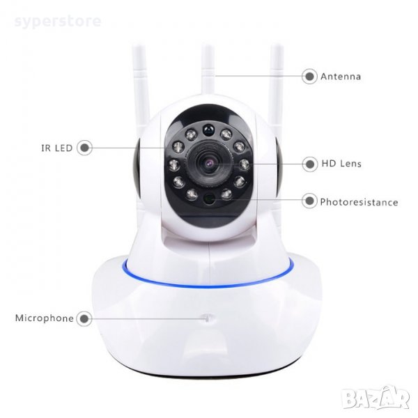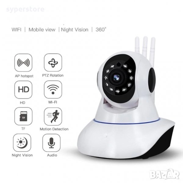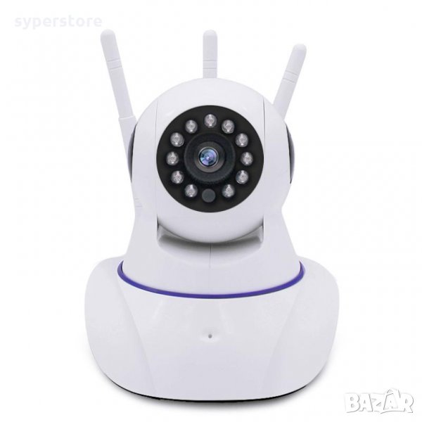 Видеонаблюдение - IP мрежова Камера безжична V380 P2P 3 антенис двупосочен интерком и нощно виждане вътрешен монтаж