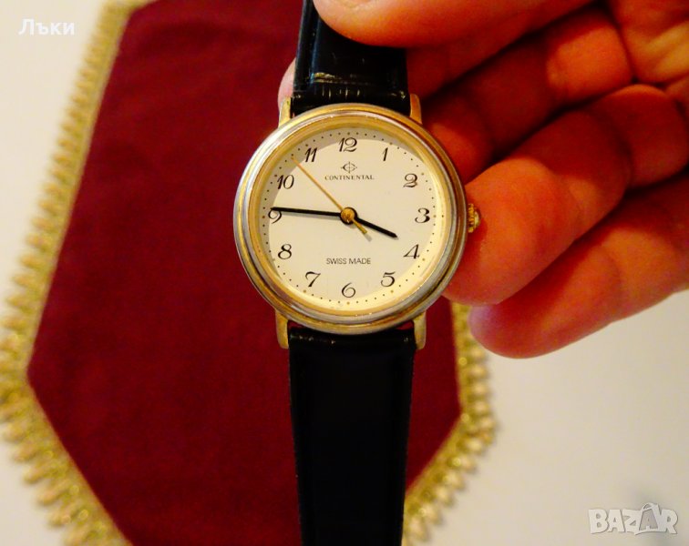 Оригинален швейцарски дамски ръчен часовник Continental с швейцарски кварцов механизъм,позлата.Стъклото