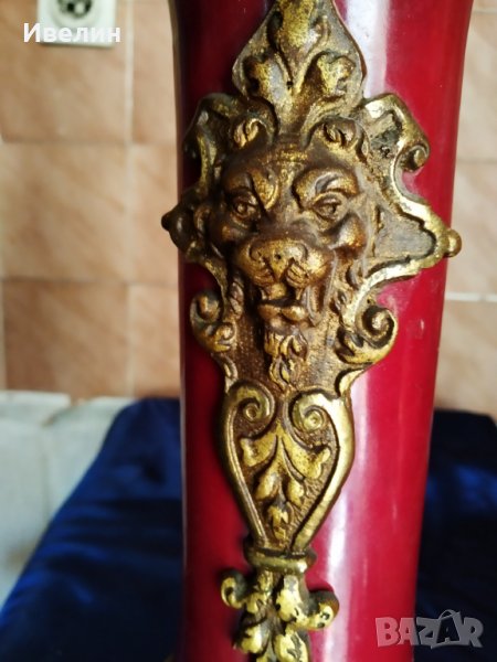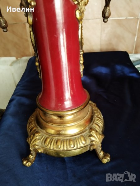 стар бароков свещник корпус отжронз и порцелан.забележка на порцелана-посочена е/ с височина 58см,ширина 24см.внос от франция.