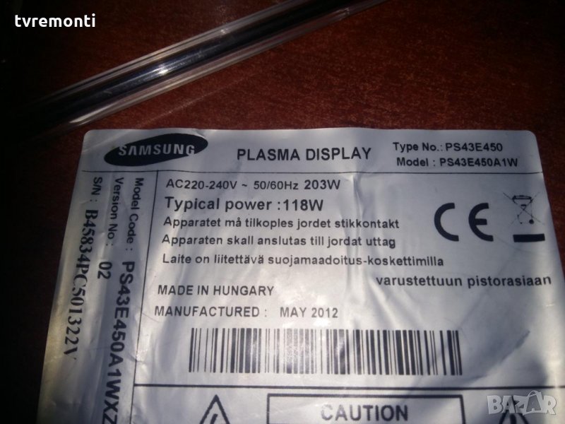 YB board LJ41-10137A ( LJ92-01852A ) модел samsung ps43e450 Старателно тествана от нашия техник