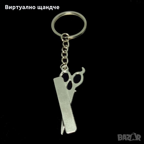 Стилен тематичен ключодържател с фризьорски ножици и гребен