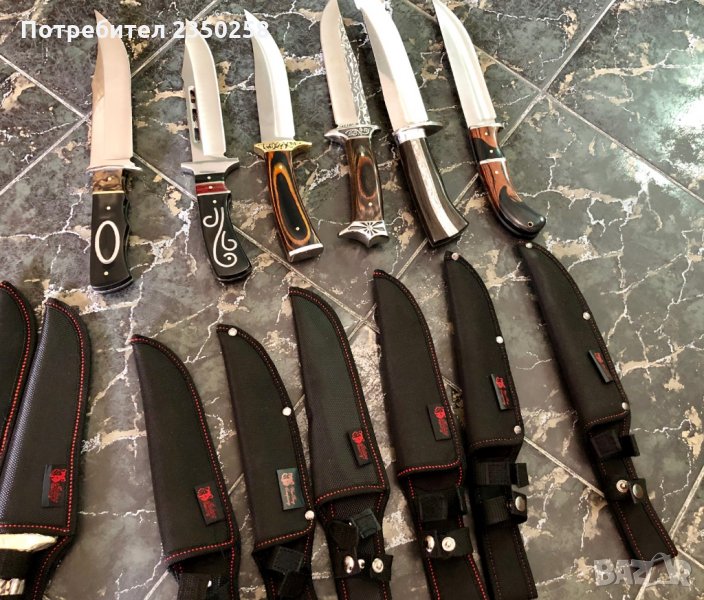 Всеки нож е комплект с кания / калъф, с възможност за окачване на колан / раница и двойно закопчаване.