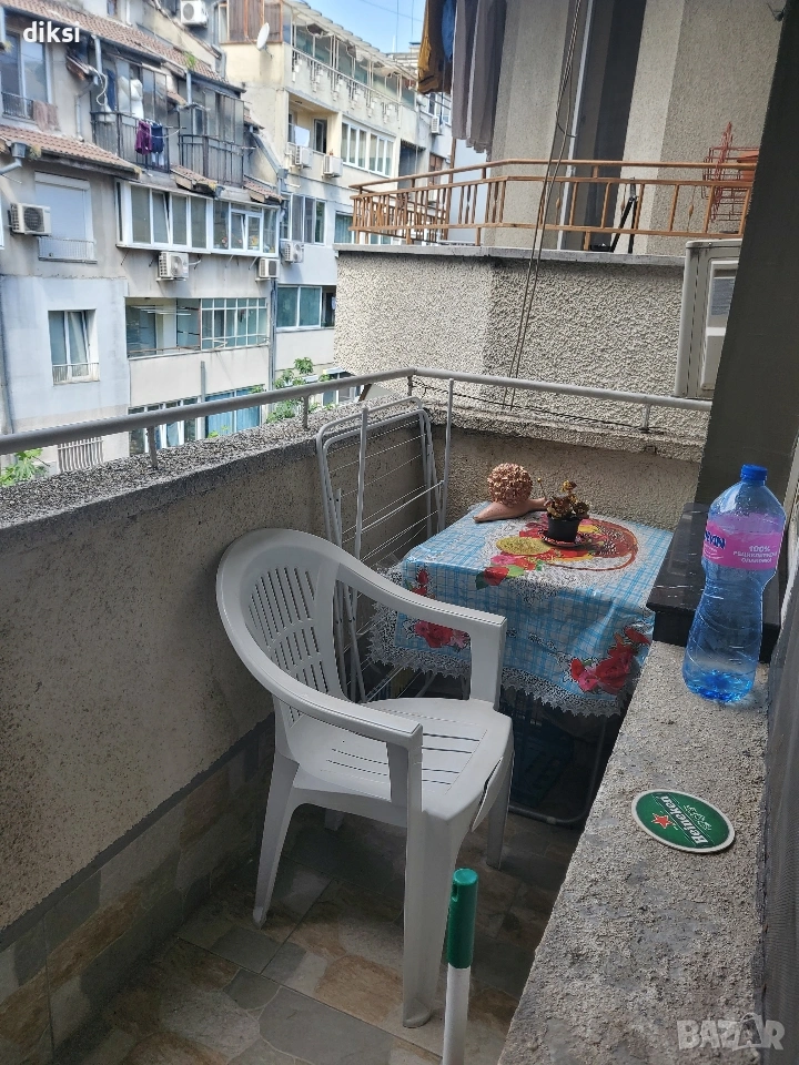 Нощувки в стая от тристаен апартамент с общ санитарен възел. Минимален брой нощувки - 2. Намира се до Медицински институт. Център. С две легла с размери 2 м. на 1,10 м., с възможност за съединяване и получаване на голяма спалня. На 5 минути пеша е отдалечено от ВИНС и Морска градина, а на 10 минути пеша е до хотел Черно море. При настаняване за един или за двама човека цената е 26 €. на вечер, а за трима е 34 € на вечер. Включена телевизия и интернет. Настаняване след 14:00 ч., но не по-късно от 20:00 и освобождаване до 12:00 ч. в деня на напускане. Районът е в синя зона.