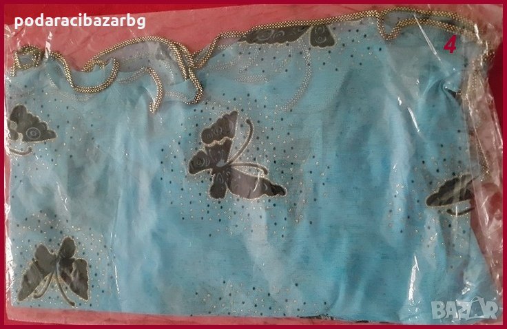 да е в най-семпъл тоалет. Опитните дами знаят, че за да се откроят от множеството, не е задължително да влагат средства в прекалено скъпи тоалети, а тайната е по-скоро в бижутата и аксесоарите. За да можеш да избереш спрямо тоалета и тена си, шалът се предлага в множество цветове – синьо, лилаво, цикламено, екрю, бяло...Някои от цветовете имат сходство и за да няма объркване, снимките са номерирани. Моля, разгледай и при заявка посочи, кой номер желаеш да получиш. Размер – 170 х 43 см. Материал – газ