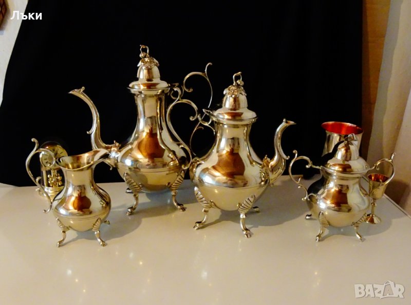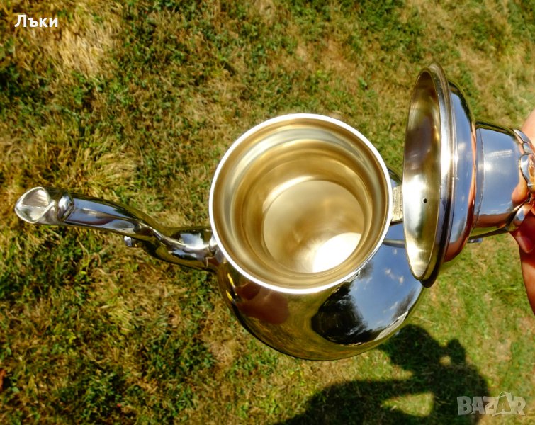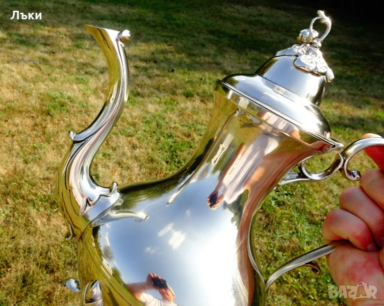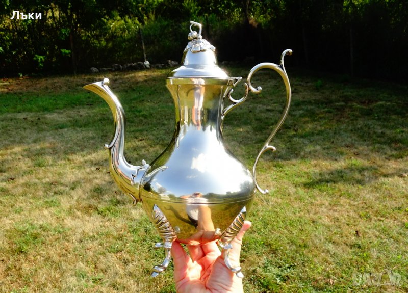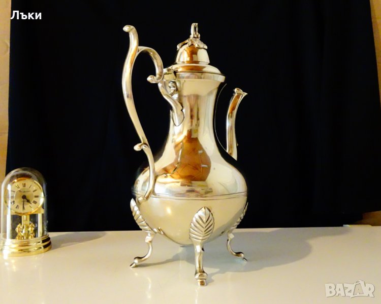 с проба 800.Кралска осанка и блясък.Височина 32 см.,дължина 27 см.,диаметър 16 см.Тегло 1650 гр.Вместимост 2.8 литра.