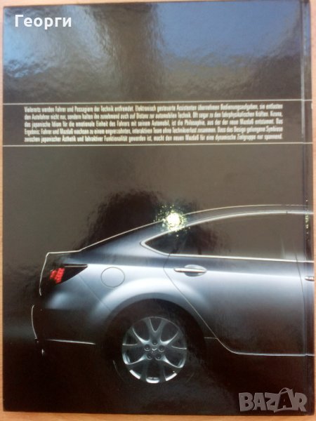 Продавам книга за Mazda 6 (моделът от 2008 г.) на немски език, с твърди корици, около 120 страници, с много историческа информация за предшествениците на модела. Издадена е през 2008 г., което означава, че по-нови модели от 2008 г. няма. В почти отлично състояние. Леки и почти незабележими износвания на места отвън.