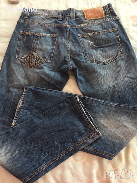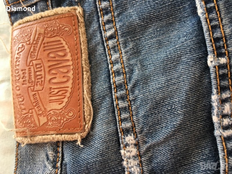 100 % Just Cavalli оригинални дънки, състояние отлично, 100 % памук. Размер 34, талия 43 см., ханш 54 см., бедро от четала 29 см., дълбочина 23 см., дължина 101 см., глезен 17,5 см. Слим фит, мерките са едностранни. Не коментирам цената!!! Намалени!!!