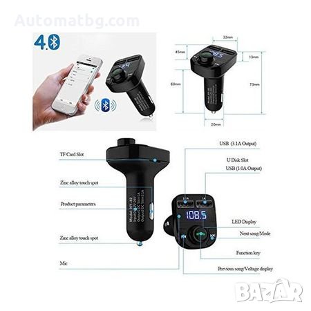 FM Трансмитер X8 Bluetooth Kit KFZ Мултифункционален , Bluetooth , FM аудио предавател ,MP3 плейър,
